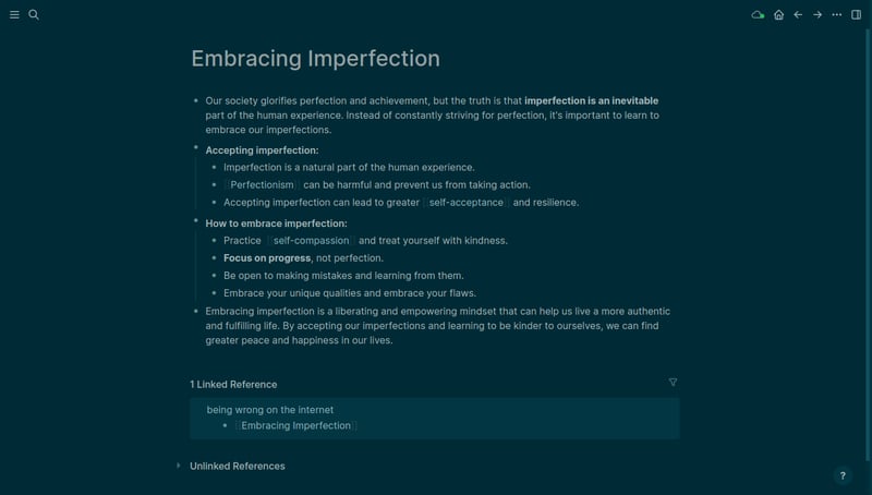 Logseq is a privacy-first, open-source knowledge management platform. It uses an outliner-based approach with bidirectional linking, letting you build a personal knowledge graph from plain text Markdown and Org-mode files.